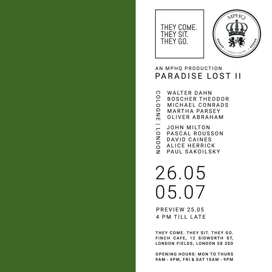 MPHQ Project Space London I Cologne is an independent exhibition space run by Martha Parsey that exhibits painting, sculpture, photography, installation and cinema. MPHQ Pictures is an independent art film production company run by Martha Parsey. Further information can be found on MPHQ website: http://www.mphqprojectspace.com
